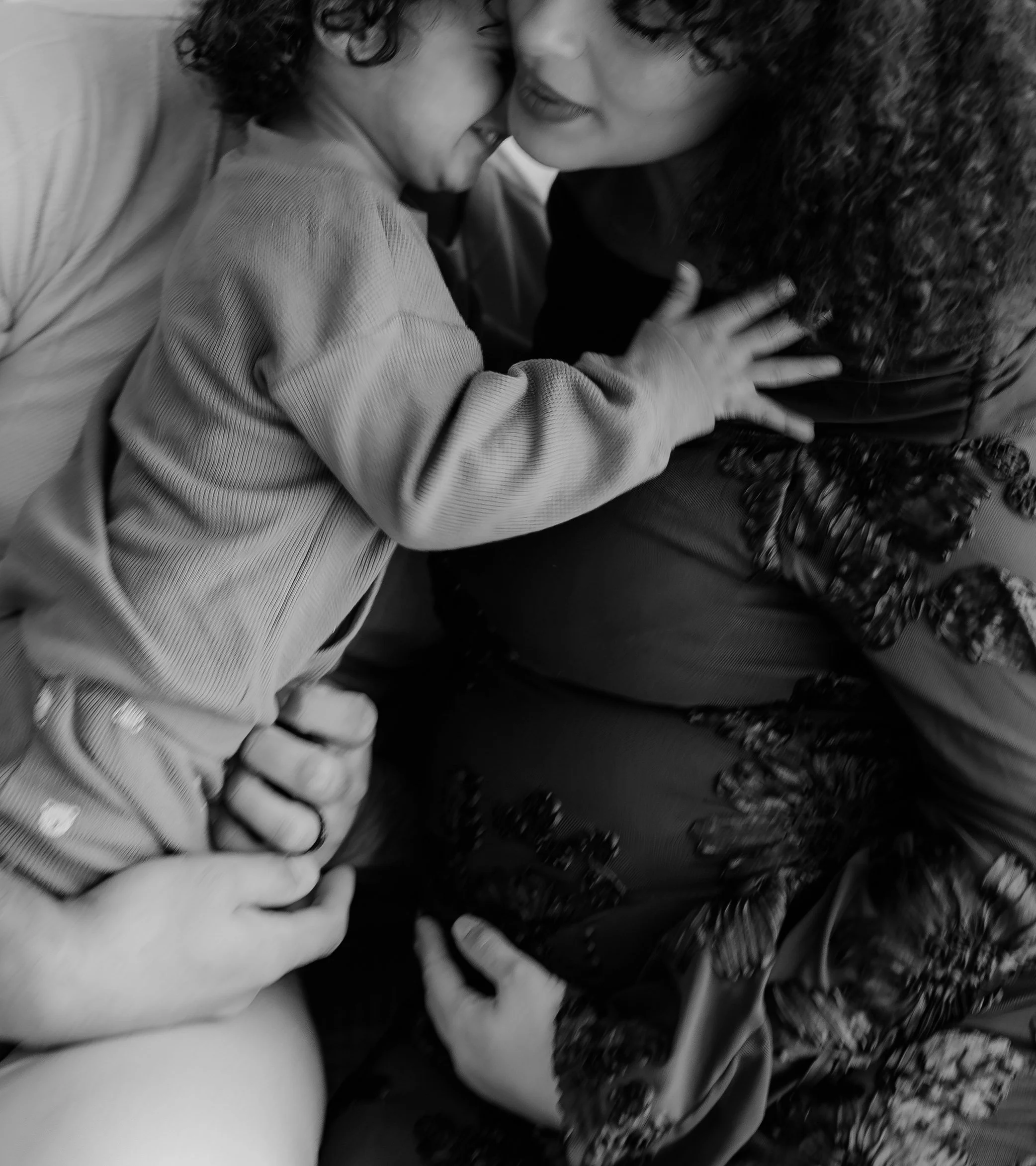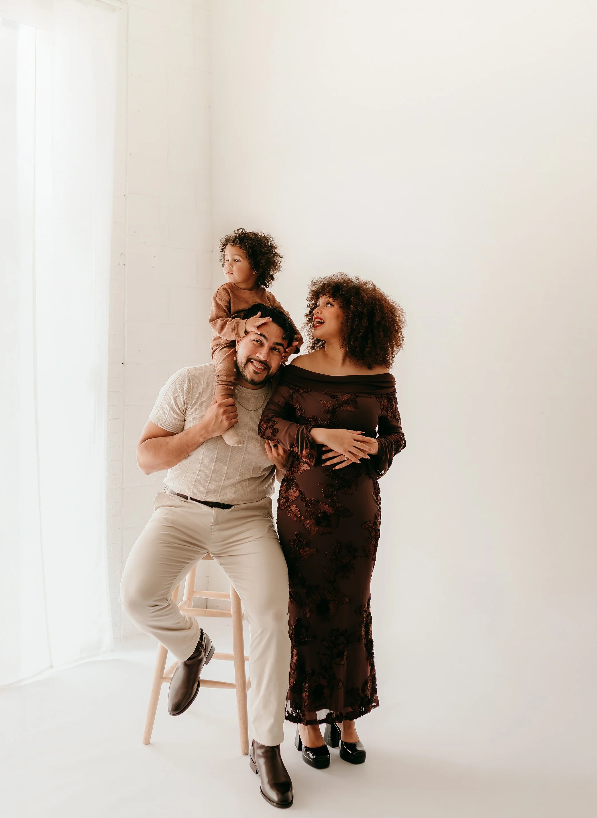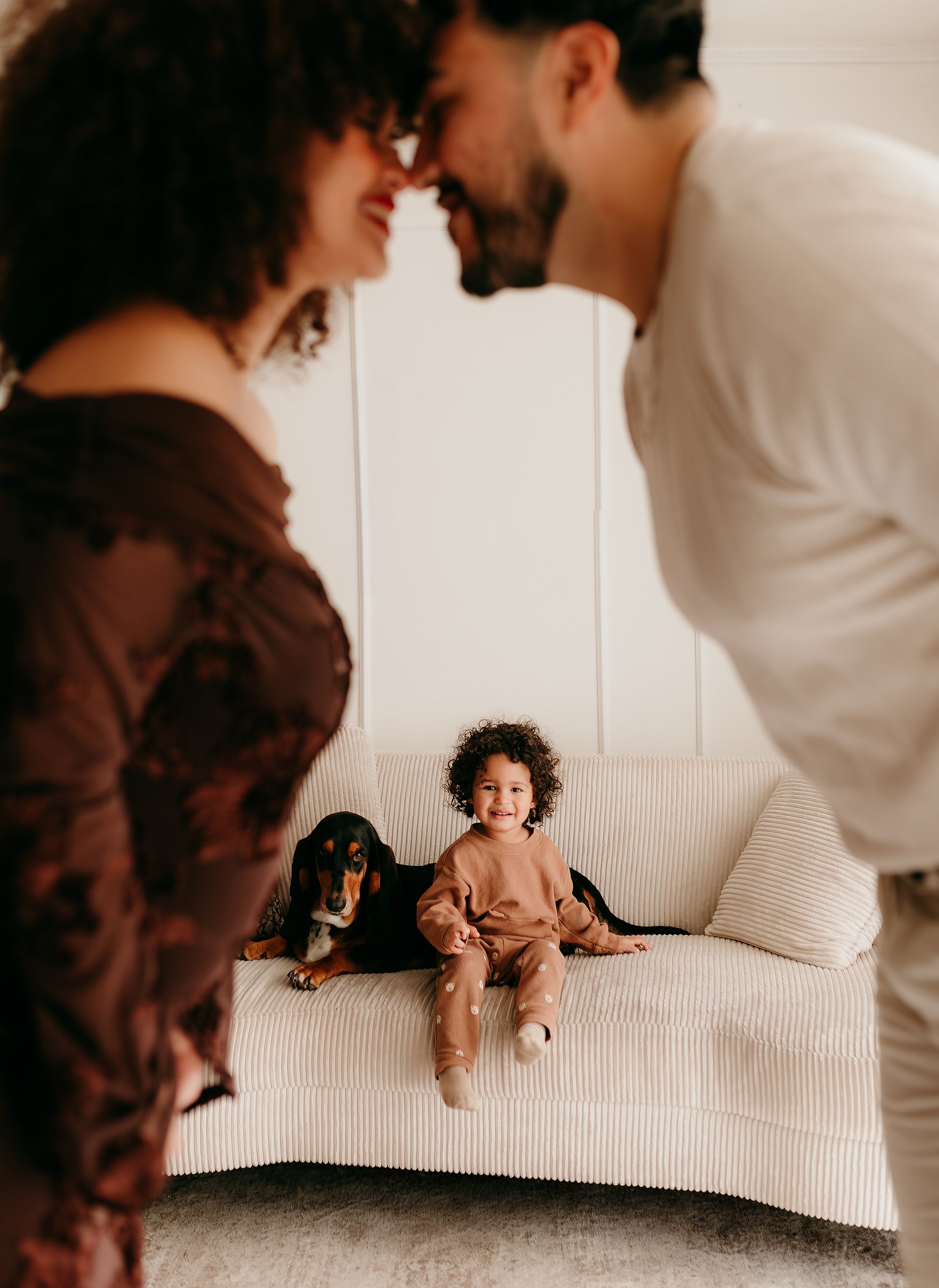 Their little boy completely stole the show in the sweetest way. The kind of energy that makes a session come alive—full of laughter, curiosity, and the most perfect curly hair you’ve ever seen. His giggles echoed through the studio, and it was impossible not to smile the entire time. Watching him love on his parents (and already step into his role as big brother) was something really special.